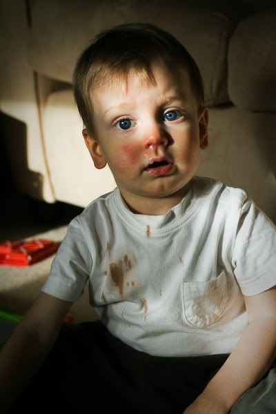 I couldn't resist posting this pic.=) After the snow, we came in to drink some hot cocoa, which was quickly spilled down the front of his white shirt. Runny nose, cold red winter burned cheeks, and hair needing a cut, this is MY little man at his finest!